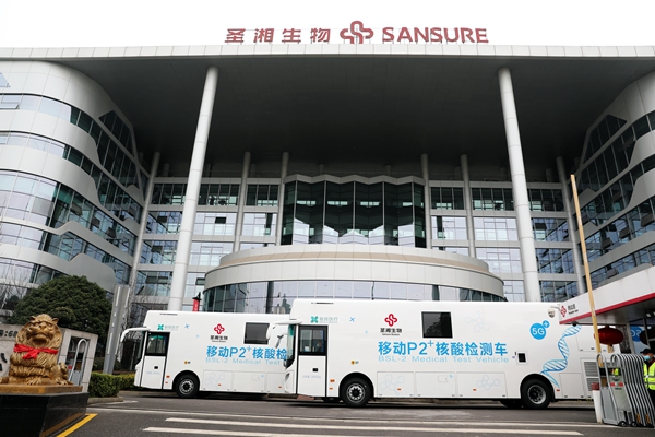 目前,北京、广东、黑龙江、四川、山东等多省均已配置移动核酸检测车。BB贝博艾弗森生物此次投入使用的移动P2+核酸检测车共2台,为湖南省首批投入使用的移动核酸检测车,可实现采样、检测、报告一站式服务,2台日检测量(10混1)可达10万人份,最快45分钟内出结果!