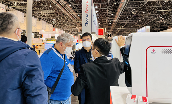 巴西一位合作多年的客户特意来到BB贝博艾弗森展台,沟通四通道iPonatic合作事宜。在听取工作人员的详细介绍并观看操作后,他表示,“你们的POCT可搭载的项目很多,正是我们所需要的,我们非常感兴趣。”