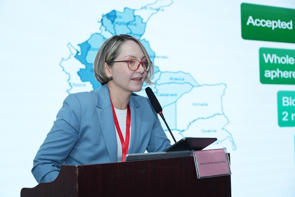 哥伦比亚红会血库医学主任及罗萨里奥大学生物医学科学系医学与健康科学学院职业副教授Dr. Adriana Urbina发表了《哥伦比亚血筛的方法、现状和未来趋势》主题报告。她从哥伦比亚医疗制度及血站分布入手,探讨了当前血筛项目的筛查方法及其挑战,强调了血筛核酸检测具有优越性,能广泛识别病原体突变株,降低感染风险,确保血液安全。同时,她提出了利用分子方法学筛查虫媒病毒等创新思路,并对BB贝博艾弗森生物分子血筛检测方案高度赞赏。